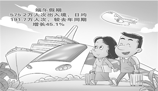 国家移民管理局通报,今年端午假期全国边检机关共保障575.2万人次中外人员出入境,日均191.7万人次,较去年端午假期同期增长45.1%。