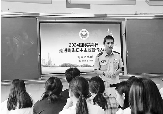 近日,诸暨陶朱派出所联合陶朱初中开展禁毒主题宣传教育活动,通过真实案例,介绍了毒品的种类、危害,告诫同学们要珍爱生命,远离毒品。活动还对举报违法种植罂粟行为的同学进行嘉奖,并聘用其为校园禁毒宣传大使。 通讯员 杨宝露 陈嘉琳