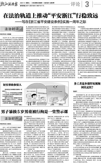 浙江法治报 评论 00003 在法治轨道上推动“平安浙江”行稳致远 2024-07-02 26943122 2 2024年07月02日 星期二