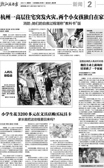 本报讯 近日,杭州一高层住宅小区突发火灾,独自在家的两个小女孩成功获救,她们的自救过程堪称“教科书”版。