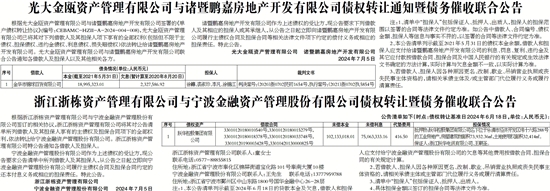 光大金瓯资产管理有限公司与诸暨鹏嘉房地产开发有限公司债权转让通知暨债务催收联合公告
