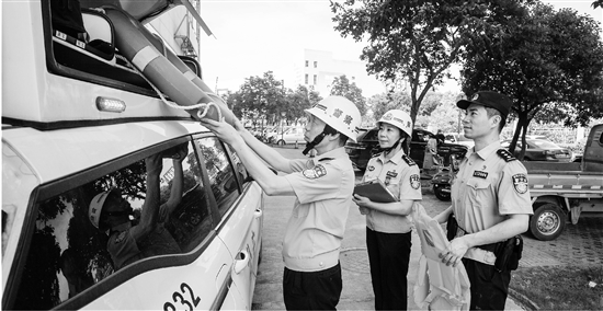 | 近日,台州市公安局黄岩区分局警务督察大队民警突击检查城东派出所的处警车,查看警车上的救生圈、救生衣等救生装备以及常用应急药品等是否配备齐全。夏季高温,公安机关经常会接到溺水、中暑等各种险情及求助报警,处警车辆必须时刻携带好各种救生装备和应急药品,以便第一时间发挥作用。 通讯员 喻跃翔 摄 |