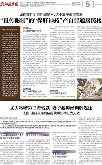 丈夫私赠第三者钱款 妻子起诉经调解返还