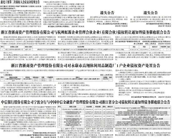 中国中信金融资产管理股份有限公司浙江省分公司作为上述债权的受让方,现公告要求下列借款人及其担保人从公告之日起立即向中国中信金融资产管理股份有限公司浙江省分公司履行主债权合同及担保合同约定的或法律文书确定的偿付义务或相应的担保责任。特此公告。