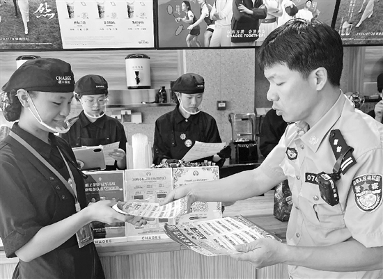 连日来,台州市公安局椒江分局海门派出所结合夏季治安打击整治行动,组织民辅警走进沿街商铺,通过面对面讲解、发放宣传资料等方式,进一步提高商户的反诈意识和能力。