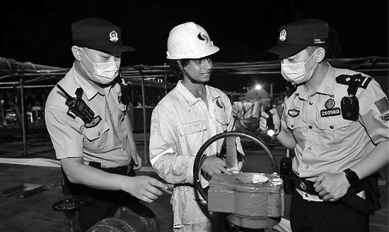 近日,岱山县公安局出入境管理大队结合夏季治安打击整治行动,联合舟山出入境边防检查站深入辖区船舶修造企业,对停靠的外国船舶围绕用电排风、作业防护、应急设备等环节开展实地检查,绷紧“安全弦”。