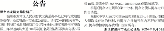 温州市龙湾区人民政府状元街道办事处已将行政赔偿款提存于浙江省温州市瓯江公证处。请你公司持相关材料,及时到浙江省温州市瓯江公证处(地址:浙江省温州市瓯海区三垟街道黄屿大道380号鸿汇名苑(壹品国际)商务楼5号楼18楼,联系电话:56579982,17816304265)领取该款项。