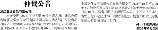 本会受理(2024)舟仲字第60号申请人舟山港综合保税区丽宝堂文化发展有限公司与被申请人浙江五波食品有限公司房屋租赁合同纠纷案,因无法以其它方式向你送达,现依法向你公告送达质证通知:舟山港综合保税区丽宝堂文化发展有限公司向我会提交了2023年10月至2024年4月租金发票以及送达邮寄轨迹,请你于收到本通知之日起10日内提出书面质证意见送本会。上述文书自本公告发出之日起经过30日即视为送达。提出书面质证意见期限为公告期满后10日内。