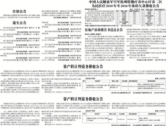 根据浙江欣宇企业管理有限公司与光大金瓯资产管理有限公司签订的《单户资产转让协议》(合同编号:CEBAMC-ZJ-B-2022-005-04),光大金瓯资产管理有限公司所合法拥有的本公告项下资产(包括债权及担保从权利)已依法转让给浙江欣宇企业管理有限公司,光大金瓯资产管理有限公司特公告通知债务人及各担保人或义务承担人,从公告之日起向浙江欣宇企业管理有限公司履行相关义务。浙江欣宇企业管理有限公司作为上述资产的受让人,现公告要求债务人及担保人或义务承担人,从公告之日起向浙江欣宇企业管理有限公司履行主债权合同及担保合同约定的偿付义务或相应的担保责任或法院判决文书所确定的义务。