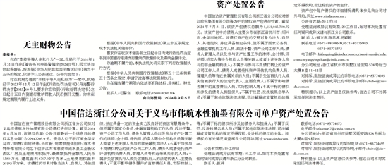 中国信达浙江分公司关于义乌市伟航水性油墨有限公司单户资产处置公告