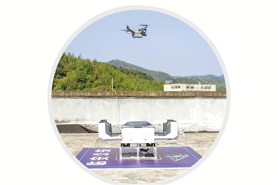 据了解,如今每天有17架无人机24小时接替飞行在临安上空。