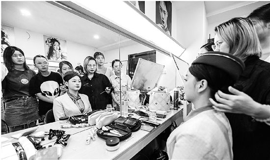 近日,湖州市吴兴区爱山街道,青年们在一所青年夜校的合作美妆机构学习化妆。
