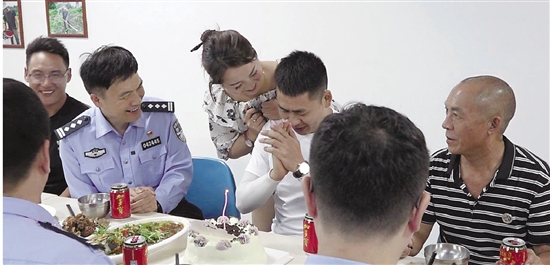 彭家夫妇又拜托店员加上一句“欢迎回家”,提着蛋糕赶回鹿山派出所。