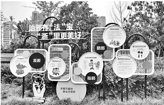 | 反邪教阵地亮相 近日,杭州市拱墅区天水街道在武林门码头环北公园内打造了集教育性、知识性与观光性于一体的武林门大运河反邪新阵地。园内,艺术宣传栏融合反邪教内容,美观且富有教育意义;路灯杆悬挂“天水十景”与反邪教标语;游步道旁,“书本造型”的宣传栏展示了街道的反邪教成果;草坪上,8块标识牌提醒市民游客坚决抵制邪教的渗透。 通讯员 尤海丽 |