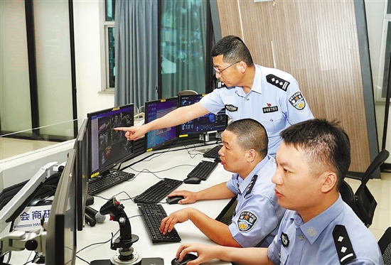 “看,这里有人登上了海塘,赶紧联系附近巡逻的民警进行劝离。”“收到,已劝离!”深夜,海宁公安情指中心依旧灯火通明。大屏背后,民警实时跟踪海塘沿线130余个监控点位,了解掌握海塘现场情况,加强对风雨潮和闸口设施的动态监控,与现场安保力量一起,共同筑起一道“陆地+空中”联动、全警动员防台风守平安的有力防线。