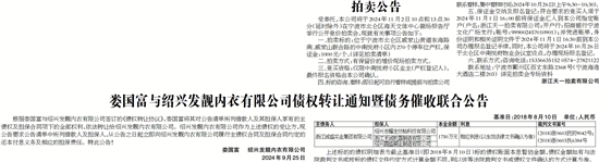 根据娄国富与绍兴发靓内衣有限公司签订的《债权转让协议》,娄国富将其对公告清单所列借款人及其担保人享有的主债权及担保合同项下的全部权利,依法转让给绍兴发靓内衣有限公司。绍兴发靓内衣有限公司作为上述债权的受让方,现公告要求公告清单中所列借款人及担保人,从公告之日起立即向绍兴发靓内衣有限公司履行主债权合同及担保合同约定的还本付息义务及相应的担保责任。特此公告!