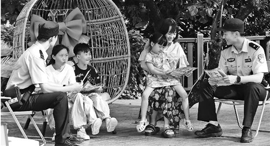 近日,临海市公安局古城派出所民辅警在台州府城开展反诈宣传活动。民辅警热情向居民讲解新型诈骗的识别技巧,增强居民反诈能力。 通讯员 郭婷婷