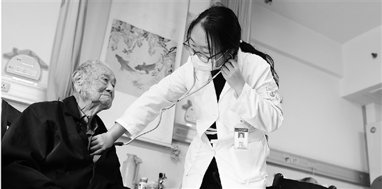 | 近年来,德清县利用闲置的医疗资源,实行“医疗+康复+养老”一站式服务,满足老年人的健康养老服务需求,让老人老有所“医”、老有所养。 2023年8月,由德清县原第一人民医院改建而来的乾元镇中心卫生院,利用闲置的病床,自主探索建立镇医康养中心,根据老人健康情况和养老需求统筹调配医疗服务及医疗设备。 图为近日在乾元镇医康养中心,镇中心卫生院医生为89岁的张文元老人检查身体。 新华社 倪立芳 |