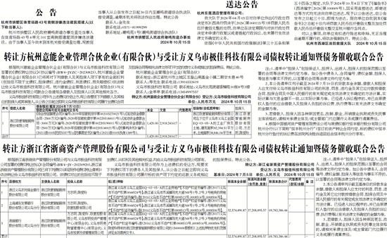 转让方浙江省浙商资产管理股份有限公司与受让方义乌市极佳科技有限公司债权转让通知暨债务催收联合公告