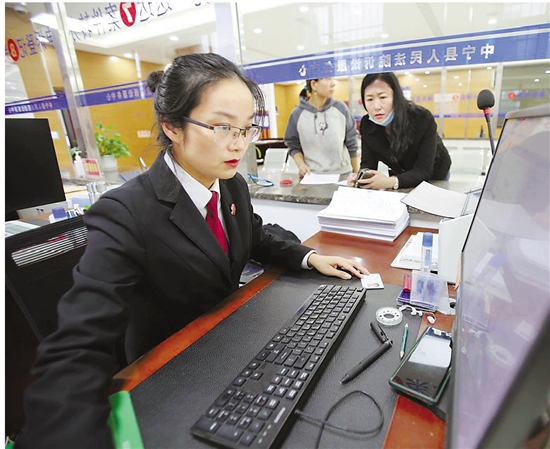 | 中宁法院诉讼服务中心工作人员正在办公 |