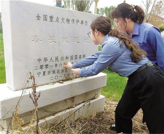 “你看,这里已经用铁丝网防护起来了,长城是老祖宗留下的珍贵文化遗产,不能毁在我们手里了……”近日,站在西吉县马莲乡秦长城遗址前,西吉县检察院检察长马彦平说。