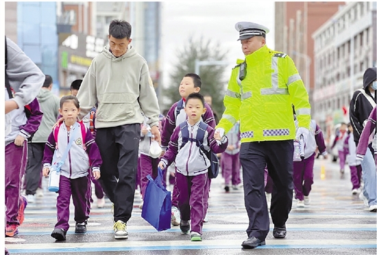 “孩子就交给我吧,我送过去。”10月17日7时30分许,在银川市第二十一小湖畔分校的丁字路口,金凤区交警二大队副大队长王辉熟练地将一名学生从家长的车上接下,绿灯放行后将其护送过斑马线。“家长把孩子放在路口,由我们护送,大大减少了家长的停车时间,道路自然畅通了。”