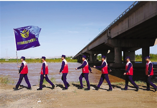 | 中宁县消防救援大队消防员在黄河边巡逻 |