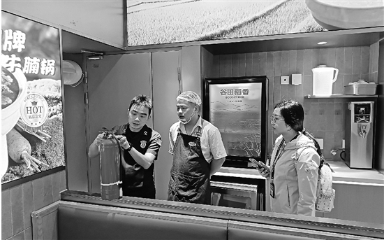 近日,杭州市钱塘区消防救援大队联合区市场监督管理局,对杭州和达意远工程管理有限公司、杭州稻盛餐饮有限公司、杰纯(上海)餐饮有限公司杭州金沙大道店开展消防产品质量监督检查。针对检查发现的个别灭火器压力不足等问题,工作人员要求整改。 通讯员 顾亚方