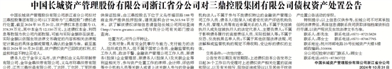 中国长城资产管理股份有限公司浙江省分公司对三鼎控股集团有限公司债权资产处置公告