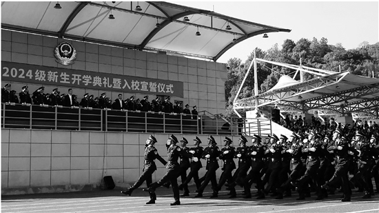11月2日,浙江警察学院临安校区洋溢着喜庆的气氛,2024级新生开学典礼暨入校宣誓仪式在此举行。阳光透过树梢,洒在整齐排列的藏蓝色制服上,新生们的脸上洋溢着青春的朝气和坚定的决心。