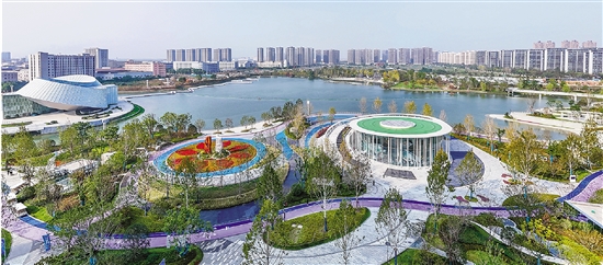 | 良渚琢新“玉” 杭州大城北又一地标性项目良渚新城玉湖11月5日向公众开放。玉湖位于杭州市余杭区良渚新城商务核心区,是在郁宅港原有水系基础上提升改造而成,拥有约15万平方米水域。本次开放的为玉湖一期、二期项目,配有蜿蜒的环湖绿道、现代感十足的桥梁、四壁通透的良渚书吧等设施,湖中人工小岛上还建有一座象征“玉璧礼天”的玉湖美术馆。玉湖的启用,将提升良渚新城重点发展区域的城市品质和景观风貌,为周边居民休闲生活提供好去处。 董旭明 摄 |