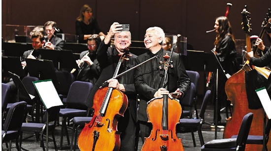 11月9日,美国费城交响乐团2024海口音乐会在海南省歌舞剧院上演。图为美国费城交响乐团成员在演出间隙自拍留念。