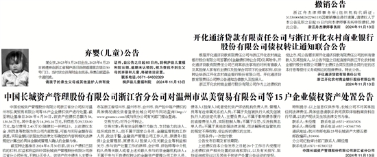 中国长城资产管理股份有限公司浙江省分公司对温州市弘美贸易有限公司等15户企业债权资产处置公告