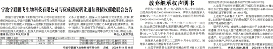 宁波宁联鹏飞生物科技有限公司与应成债权转让通知暨债权催收联合公告