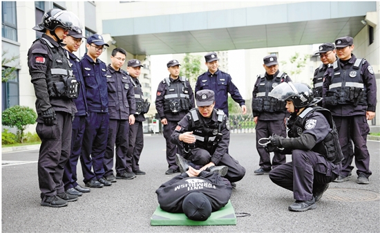 近日,平湖市公安局曹桥派出所启动“护驾冬日平安”冬季巡查宣防模式,组织辅警开展现场演练,以“讲、练、演”三合一的方式,有效提升警务实战能力,守护辖区安全。 通讯员 周孝