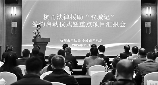 11月26日,杭甬法律援助“双城记”签约启动仪式暨重点项目汇报会在杭州举行。来自杭州和宁波市、区两级法律援助骨干齐聚一堂,围绕两地法律援助服务保障民生、助推社会经济高质量发展分享经验,唱好杭州、宁波法律援助“双城记”。