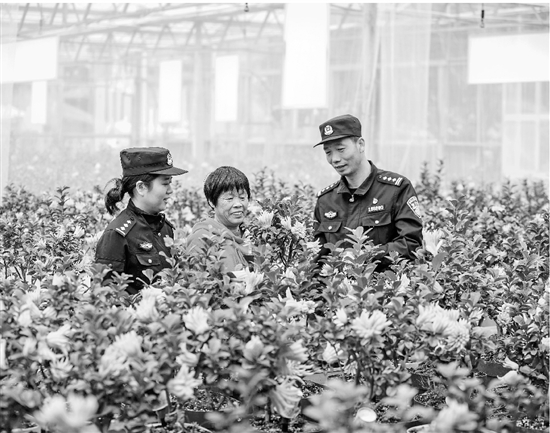 近日,金华市公安局金东分局赤松派出所深化生态警务建设,护航农户丰收。民警在辖区锦林佛手园向农户了解佛手产业情况,帮助果农采摘并开展普法宣传,筑牢反诈壁垒。