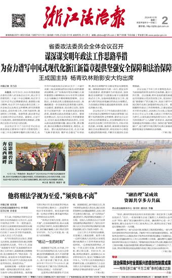 本报讯 11月29日,2024年度省委政法委员会第八次全体会议召开,深入学习贯彻党的二十届三中全会精神,传达学习习近平总书记近期重要讲话、重要指示批示精神,传达学习中央政法委员会第三十次全体会议及相关文件精神,研究贯彻落实意见,总结年度工作,分析当前形势,谋划明年工作思路。省委常委、政法委书记王成国主持会议并讲话。副省长、公安厅厅长杨青玖,省检察院检察长林贻影,武警浙江总队司令员安大钧出席。