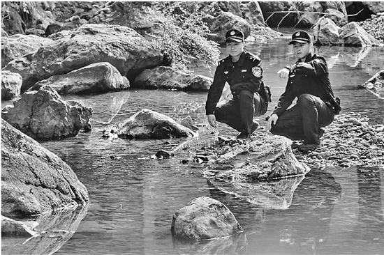 作为生态大县,武义当地公安民警经常深入辖区开展巡山巡河工作,进一步加强对自然生态环境的保护力度。图为武义县公安局熟溪派出所民警王伟峰和同事日前深入郭洞古生态村进行巡山巡河常态工作。