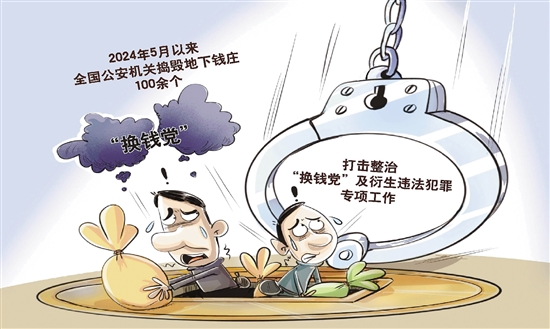 | 打击整治 记者近日从公安部新闻发布会获悉,2024年5月公安部部署全国公安机关开展打击整治“换钱党”及衍生违法犯罪专项工作以来,各地共打掉263个涉嫌非法经营、组织偷越国(边)境、诈骗、非法拘禁等衍生犯罪团伙,捣毁地下钱庄100余个,查明涉案资金流水800余亿元。 新华社 王鹏 |