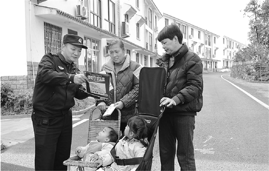近日,三门县公安局亭旁派出所组织民警深入村居,开展防范电信网络诈骗宣传,营造全民知诈、识诈、防诈、反诈的良好氛围。图为民警向村民普及防诈知识。