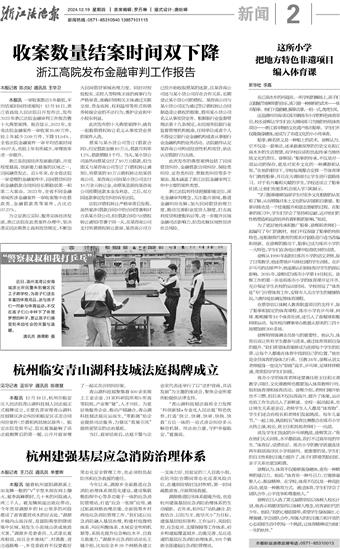浙江法院将持续把握职能定位,深化金融审判理念,关注重点领域,推进金融纠纷化解;加大民间借贷治理力度,推动完善职业放贷人制度,打击高利放贷和虚假诉讼等,进一步提升区域金融司法影响力,防范化解区域性经济社会风险。