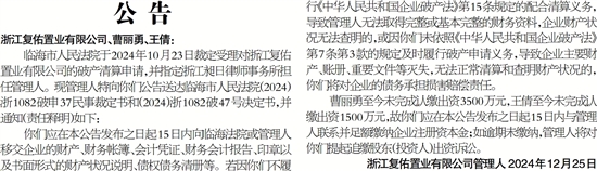 浙江复佑置业有限公司管理人 2024年12月25日