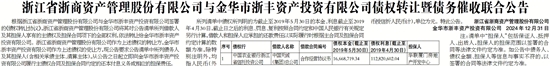 根据浙江省浙商资产管理股份有限公司与金华市浙丰资产投资有限公司签署的《债权转让协议》,浙江省浙商资产管理股份有限公司将其对公告清单所列借款人及其担保人享有的主债权及担保合同项下的全部权利,依法转让给金华市浙丰资产投资有限公司。浙江省浙商资产管理股份有限公司作为上述债权的转让方,金华市浙丰资产投资有限公司作为上述债权的受让方,现公告要求公告清单中所列债务人及其担保人(含相关承债主体、清算主体),从公告之日起立即向金华市浙丰资产投资有限公司履行主债权合同及担保合同约定的还本付息义务或相应的担保责任。