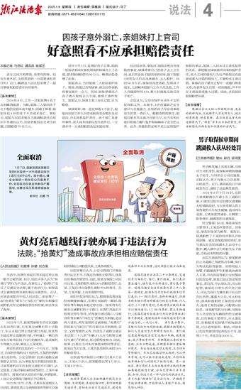 浙江法治报 说法 00004 黄灯亮后越线行驶亦属于违法行为 2025-01-09 27265233 2 2025年01月09日 星期四