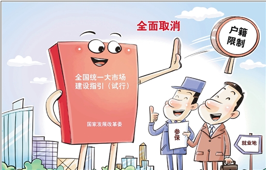 1月7日,国家发展改革委印发的《全国统一大市场建设指引(试行)》对外公布。其中提出,健全全国统一的社保公共服务平台,全面取消在就业地参保户籍限制,完善社保关系转移接续政策。