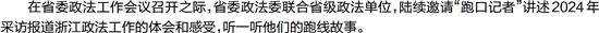 在省委政法工作会议召开之际,省委政法委联合省级政法单位,陆续邀请“跑口记者”讲述2024年采访报道浙江政法工作的体会和感受,听一听他们的跑线故事。