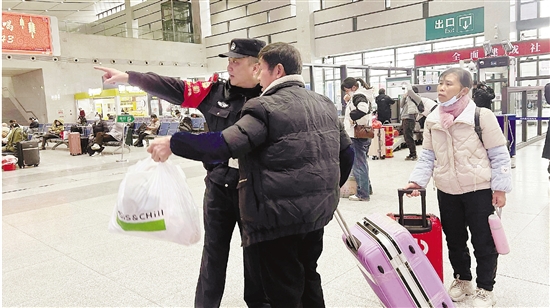 连日来,上海铁路公安局杭州公安处绍兴站派出所加大警力投入,在候车大厅、售票厅、站台等重点区域开展不间断巡逻,及时发现并处理各类安全隐患,并开展形式多样的安全宣传活动,全面筑牢春运安全防线,护航群众返乡路。
