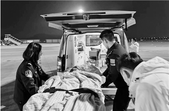 当晚7时许,该旅客及陪同家属、医护人员抵达停机坪。在旁等候的移民管理警察第一时间登机,快速高效为旅客办理入境通关手续,并协同医护人员快速办理完成了患者及陪同家属的转移工作,为患者救治赢得了宝贵时间。