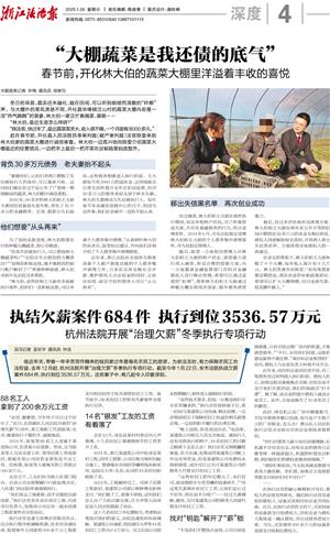 临近年关,带着一年辛苦劳作赚来的钱回家过年是每名农民工的愿望。为依法及时、有力保障农民工合法权益,去年12月起,杭州法院开展“治理欠薪”冬季执行专项行动。截至今年1月22日,全市法院执结欠薪案件684件,执行到位3536.57万元。这些案子中,有几起令人印象深刻。
